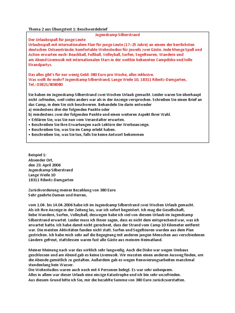 Beschwerdebrief Uber Einen Urlaub B2 Schriftliche Prufung Youtube